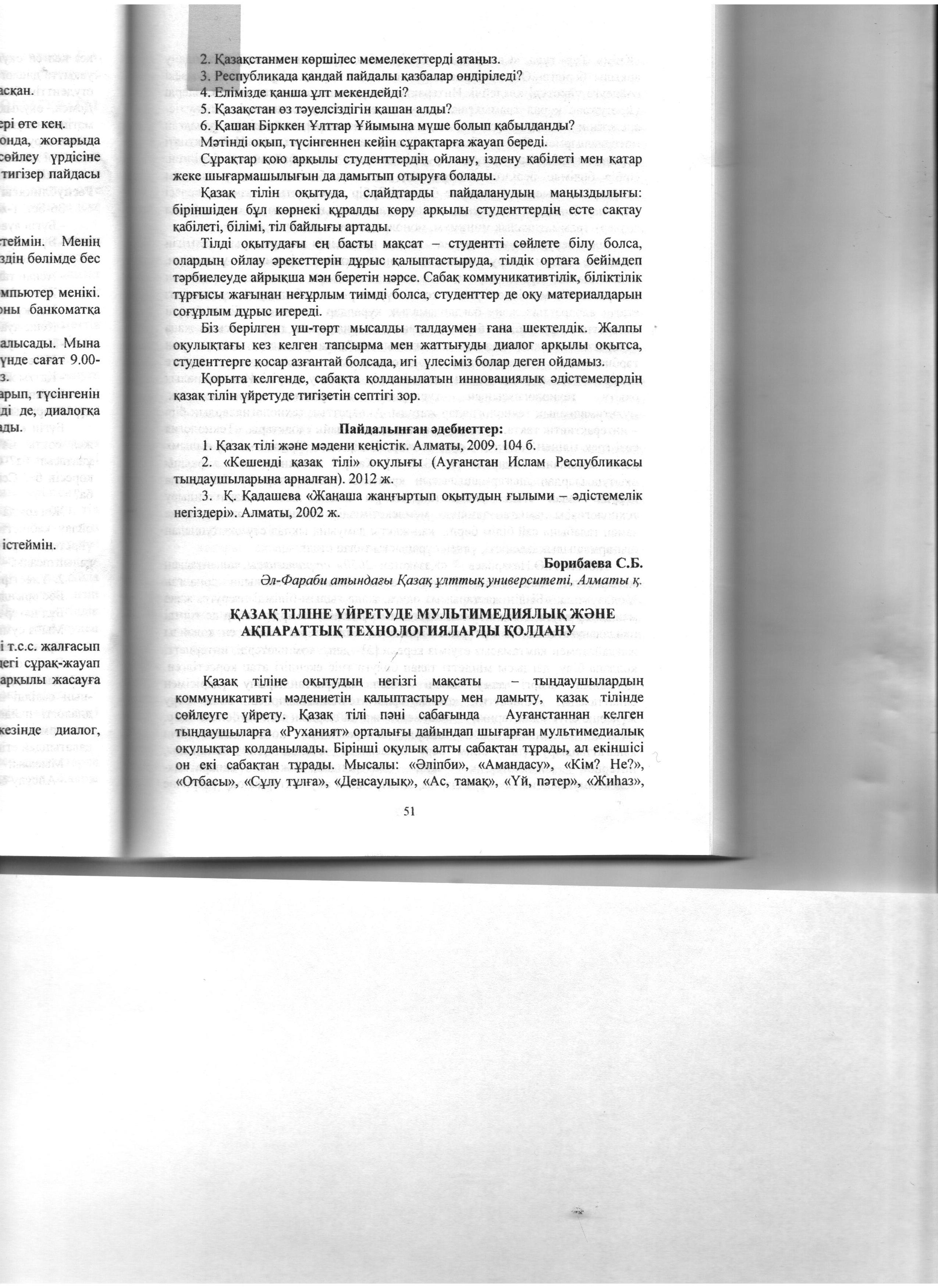 «ҚАЗАҚ ТІЛІНЕ ҮЙРЕТУДЕ МУЛЬТИМЕДИАЛЫҚ ЖӘНЕ АҚПАРАТТЫҚ ТЕХНОЛОГИЯЛАРДЫ ҚОЛДАНУ»