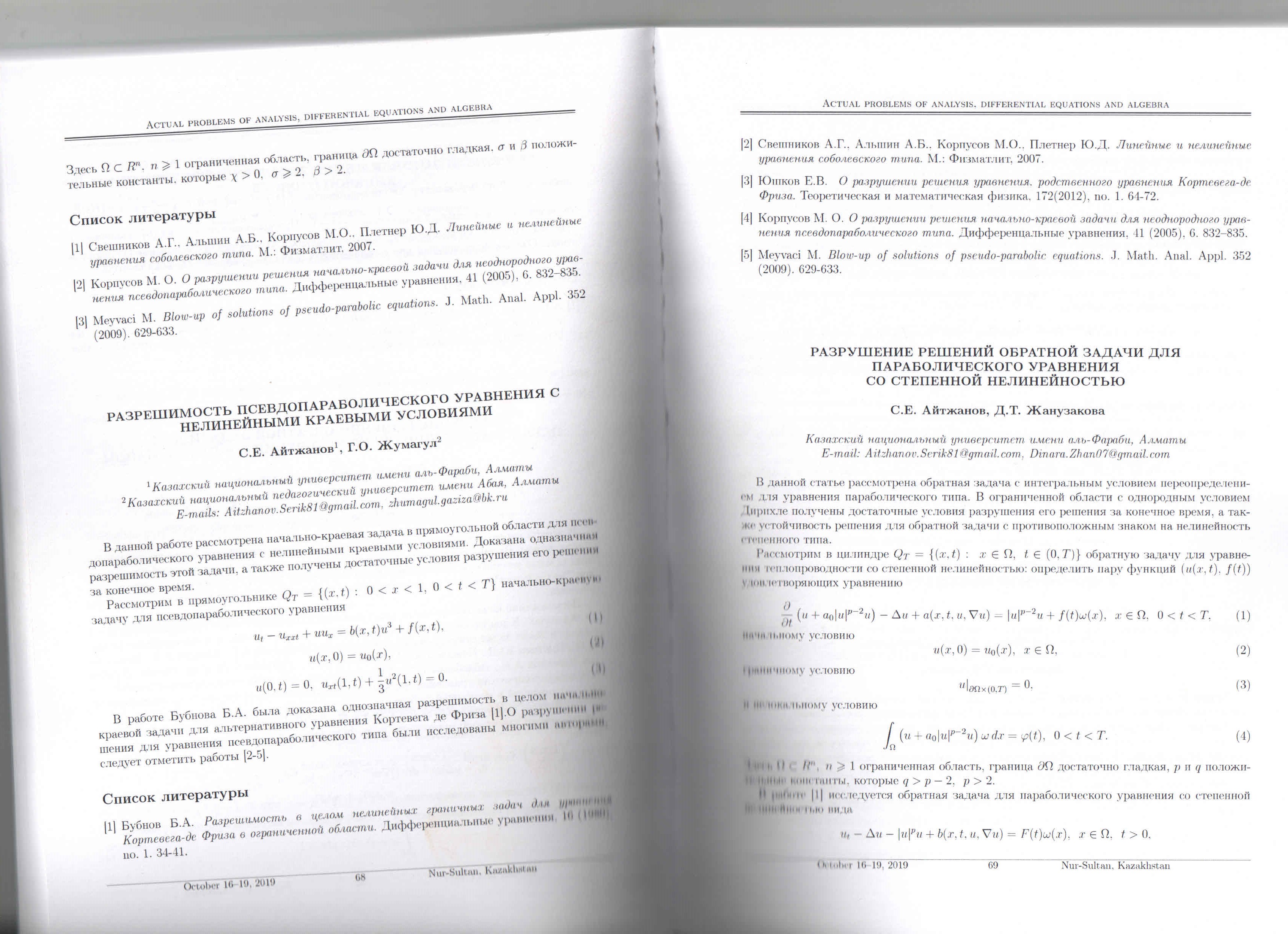 Басты бет / Механика-математика / Математика / Жинақтардағы, ғылыми мәслихаттардағы, симпозиумдардағы, семинарлардағы еңбектер (тезистер, баяндамалар)