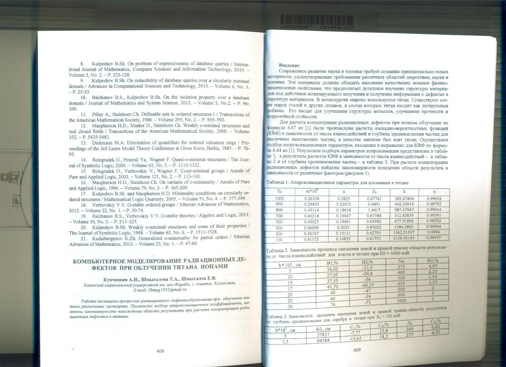 Шмыгалева Т. А. Компьютерное моделирование радиационных дефектов при облучении титана ионами. с.408-410 2015 - г. 3 - стр.
