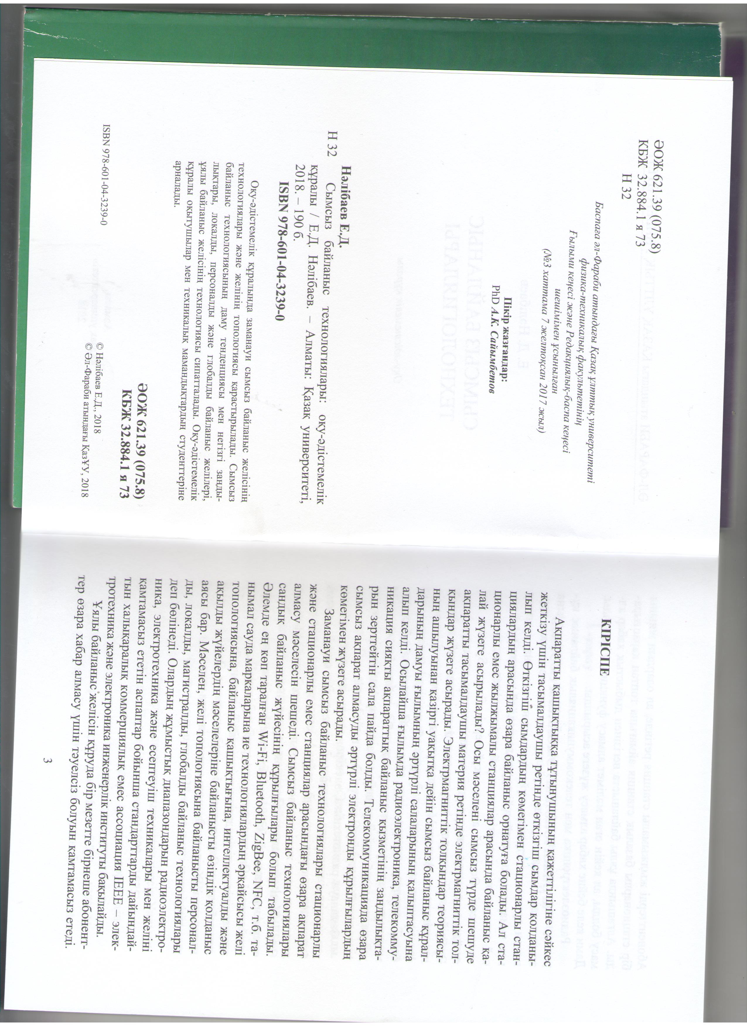 Налибаев Е. Д. Технология беспроводной связи " Қазақ университеті " 2018 - г. ISBN 978-601-04-3239-0 190 - стр. ҚАЗАҚСТАН
