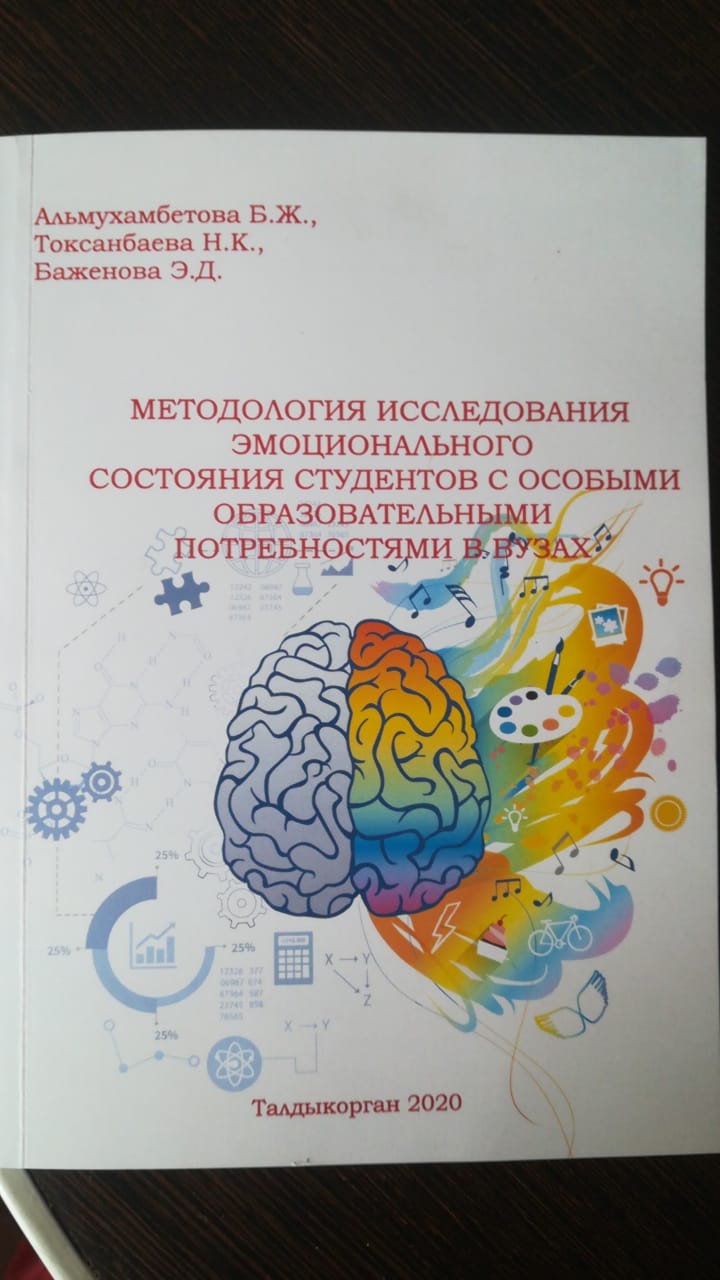 Методология исследования эмоционального состояния студентов с особыми образовательными потребностями в вузах: / Б.Ж.Альмухамбетова, Н.К.Токсанбаева, Э.Д.Баженова / учебно-методическое пособие / Талдыкорган: издательский отел Жетысуского университета им. И.Жансугурова, 2020 -123 стр.