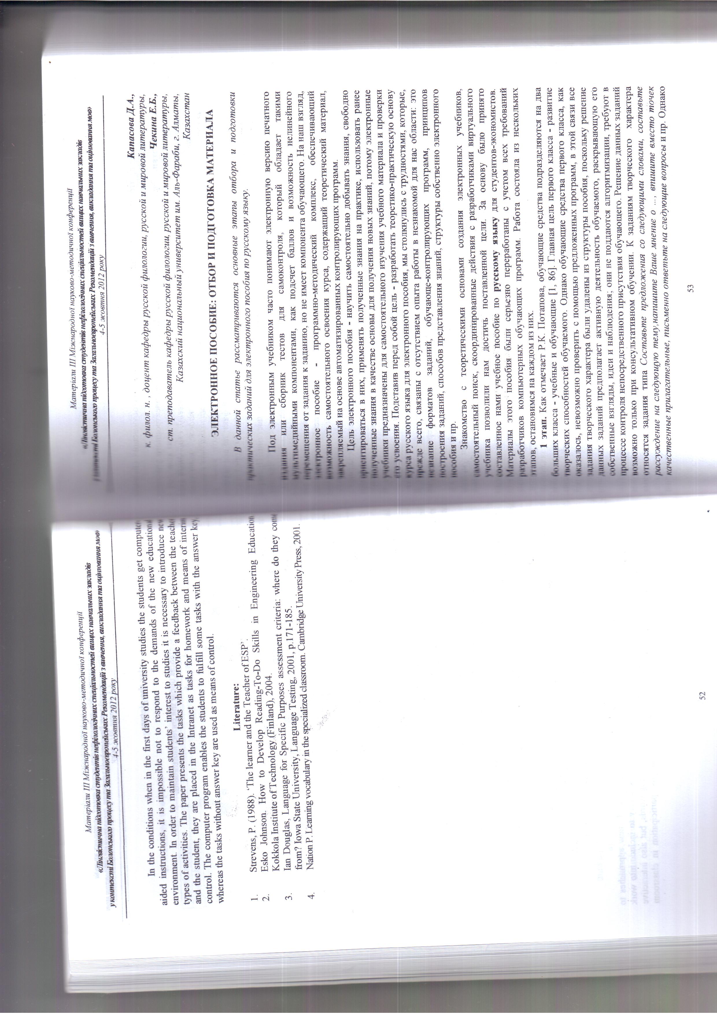 Педагогические аспекты полилингвизма. // Триединство языков: проблемы языкового образования в РК» Материалы международной научно-практической конференции Казахского национального медицинского университета имени С.Д. Асфендиярова. Алматы, 01.12.2012.