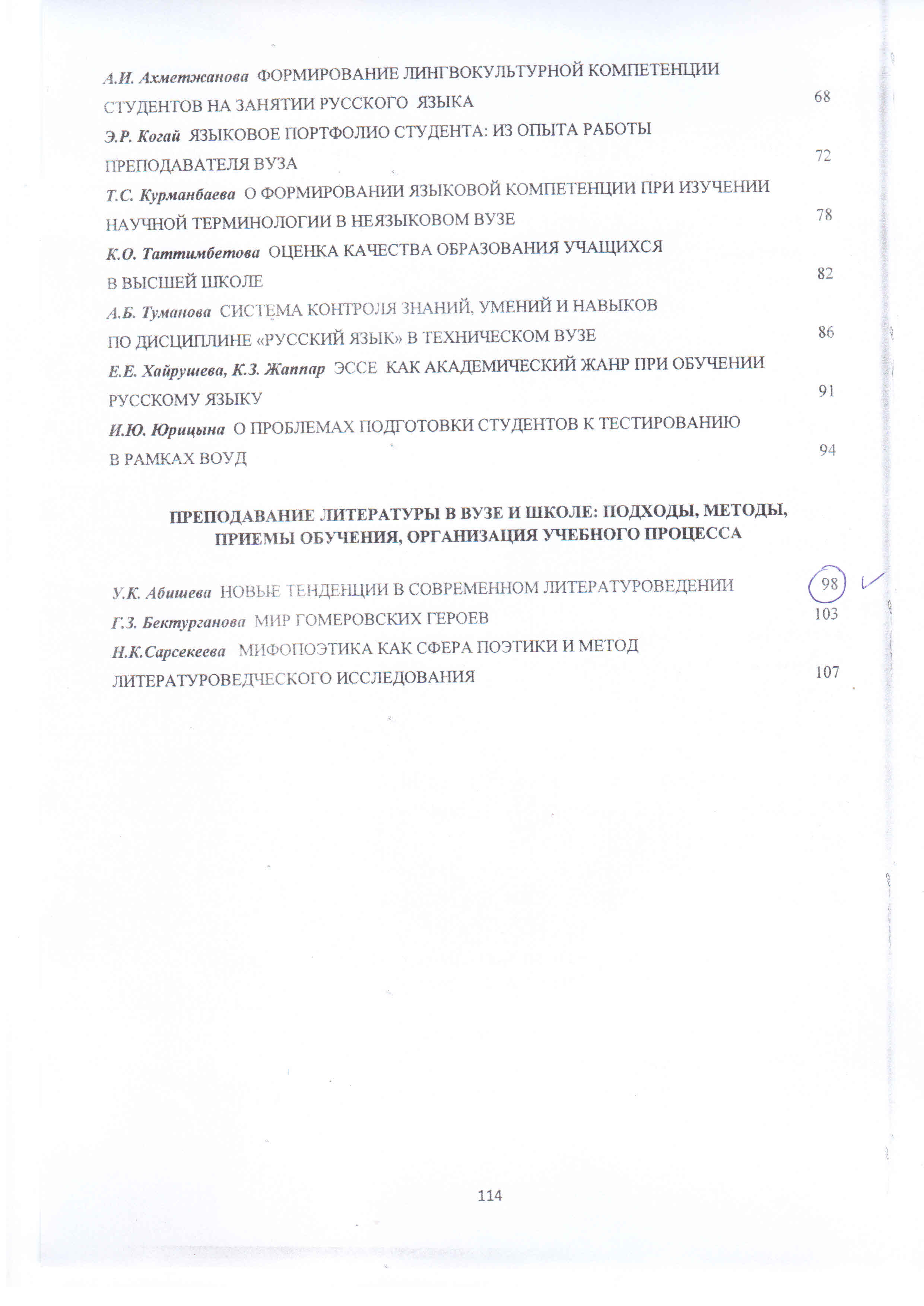 Учебно-методические комплексы русского языка для 12-летней модели образования в Казахстане // Мат. межд. научной конф. «Состояние и перспективы современной филологии». VI Багизбаевские чтения. – Алматы, 25 апреля 2014. – C. 154-157. (Cоавт. Алтынбекова О.Б.)