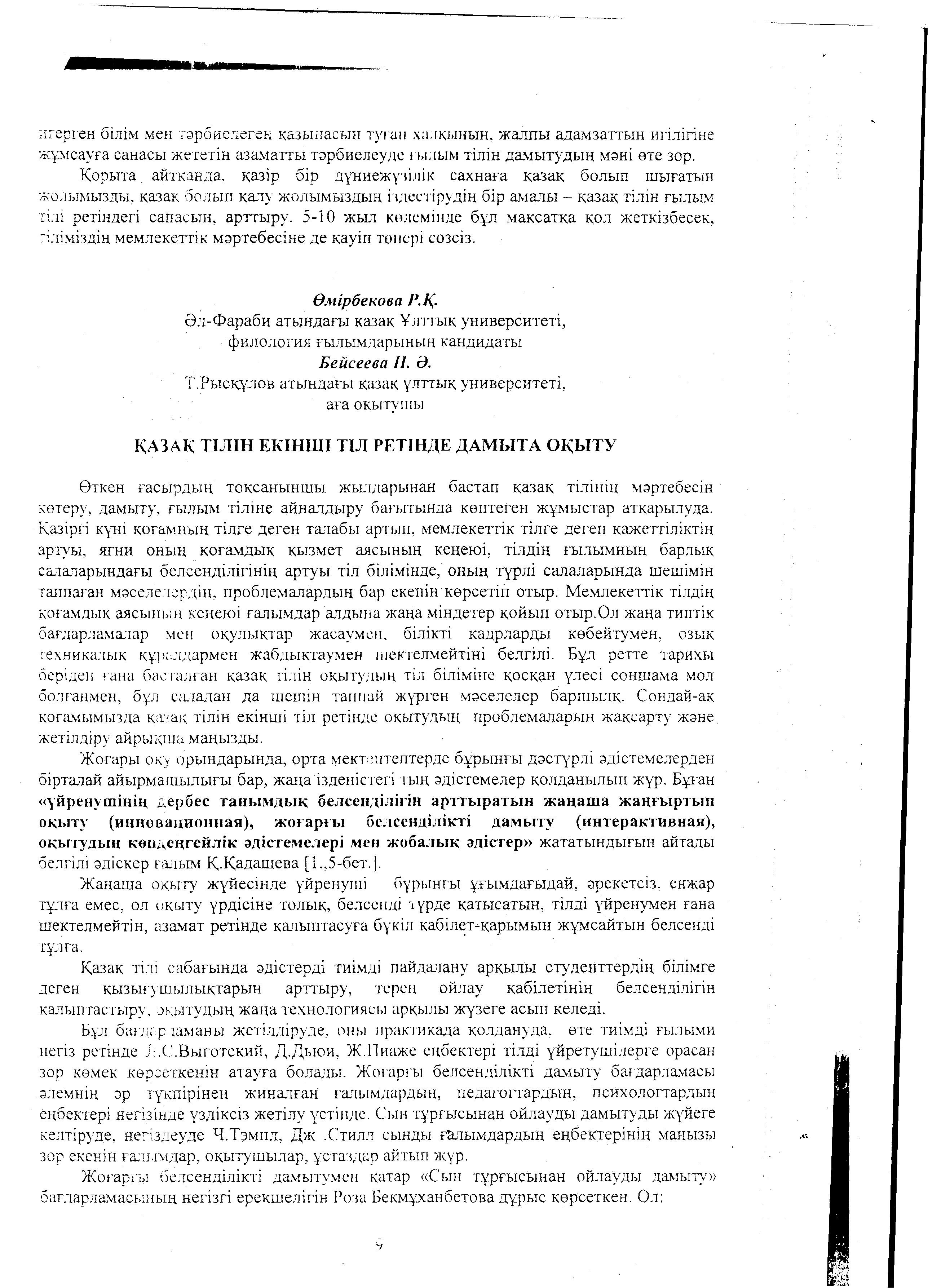 Главная / Филологический / Кафедра казахского языкознания имени А. Байтурсынулы / Труды (тезисы, доклады) в сборниках и материалах научных конференций, симпозиумов, семинаров