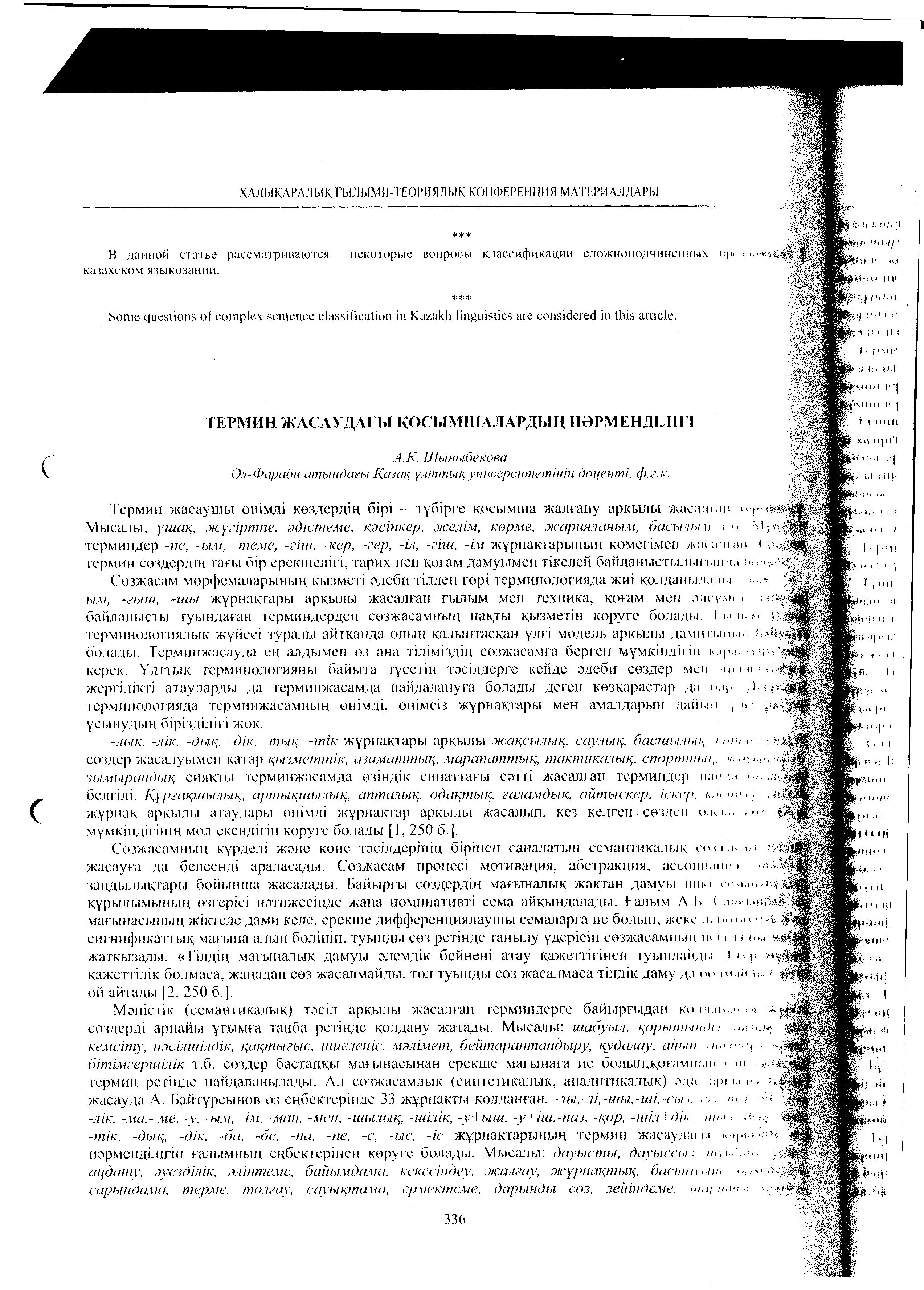 Шыныбекова А. К. Термин жасаудағы қосымшалардың пәрменділігі 2012 - г. 5 - стр.