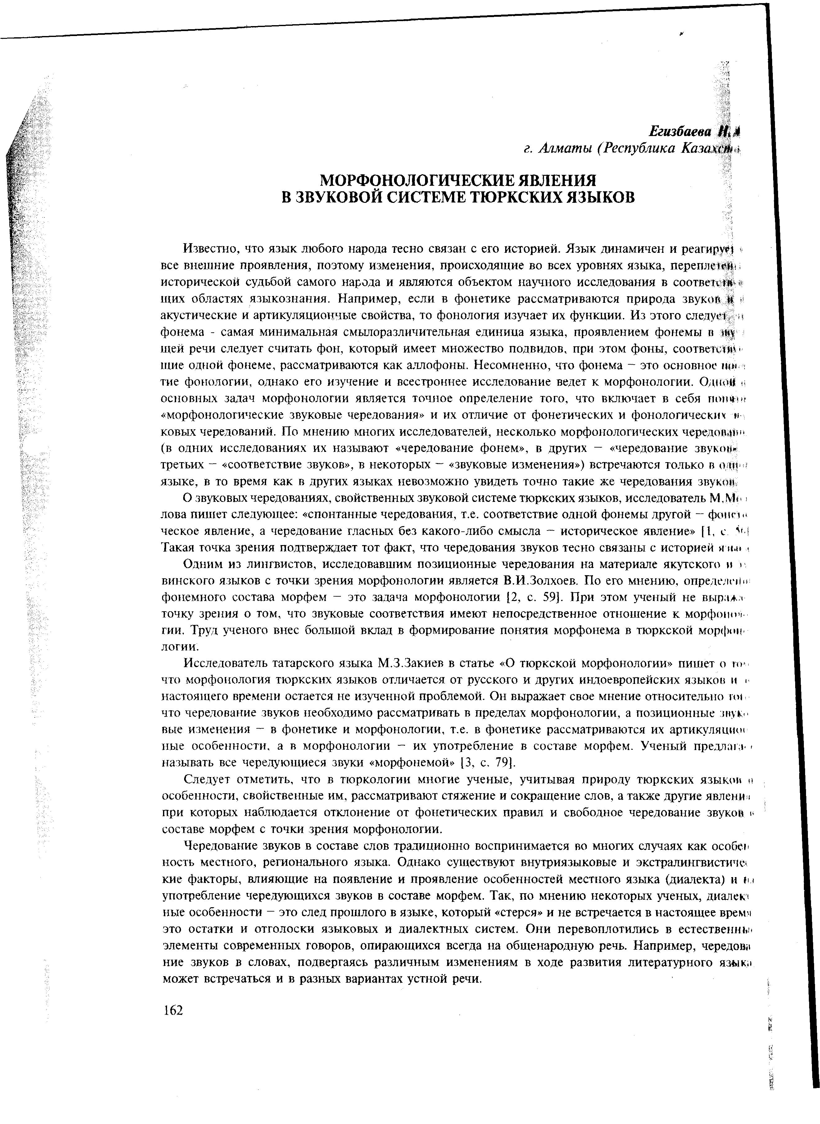 Морфонологическое явления в звуковой системе тюркских языков