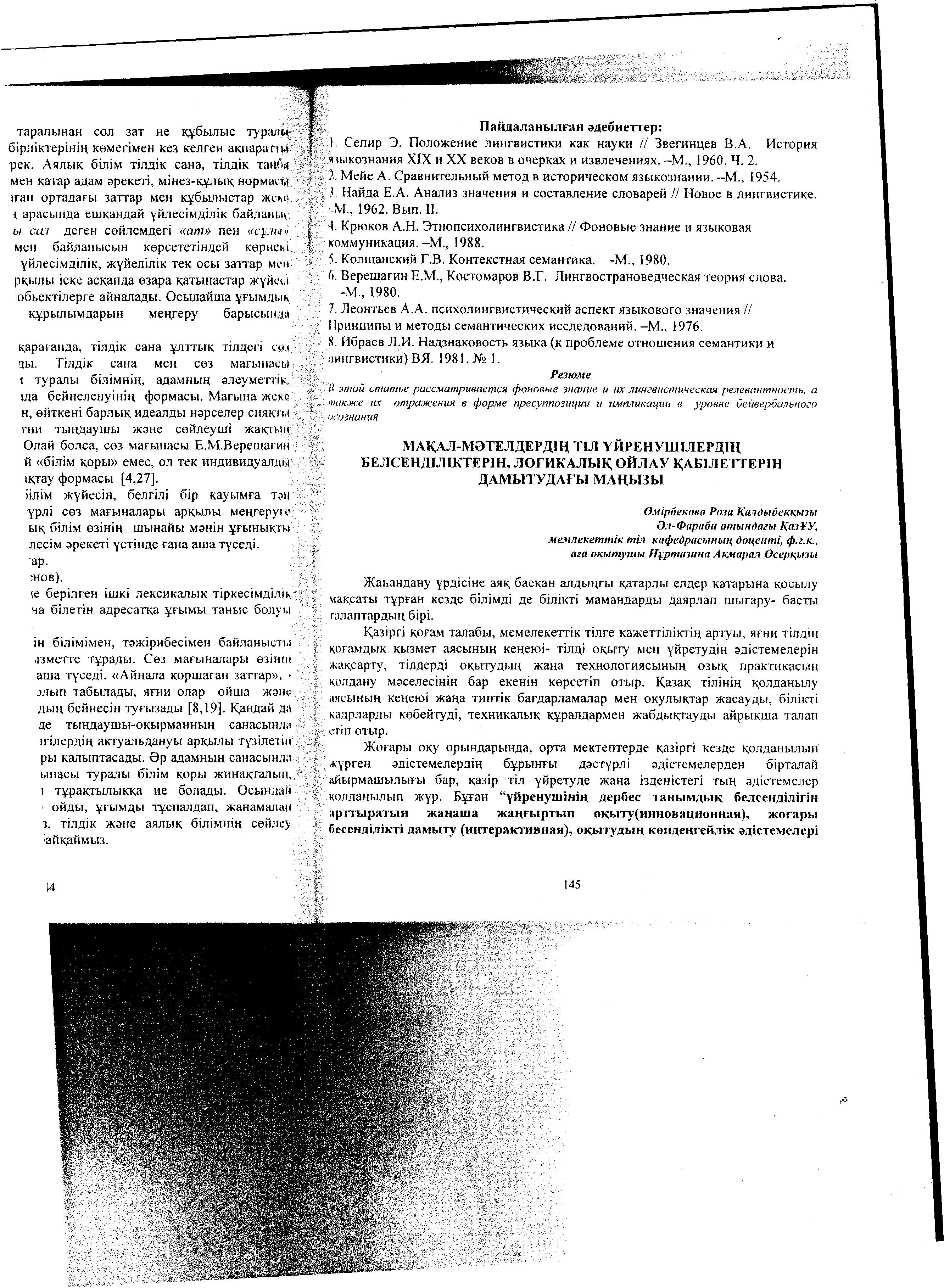 Главная / Филологический / Кафедра казахского языкознания имени А. Байтурсынулы / Труды (тезисы, доклады) в сборниках и материалах научных конференций, симпозиумов, семинаров