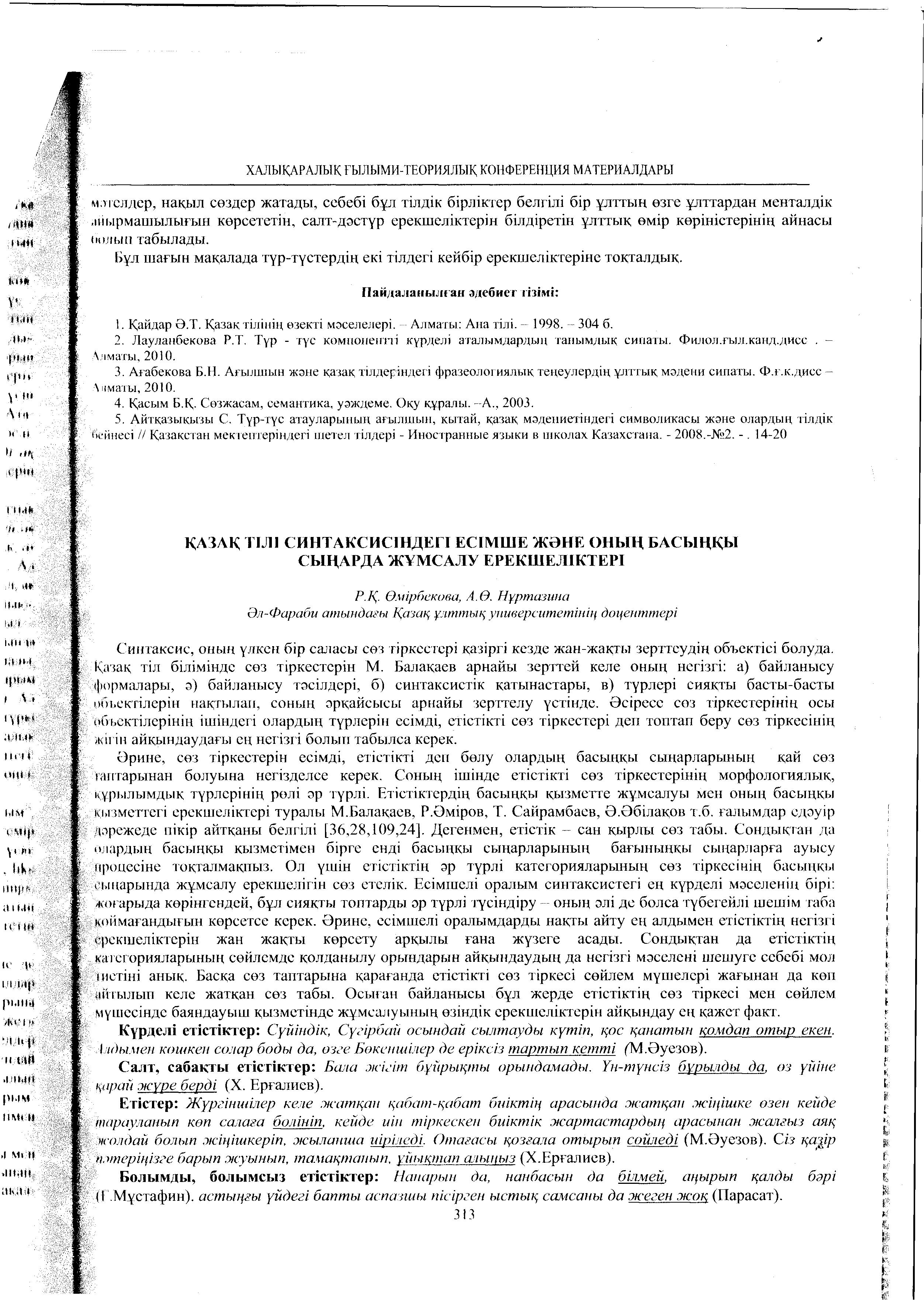 Главная / Филологический / Кафедра казахского языкознания имени А. Байтурсынулы / Труды (тезисы, доклады) в сборниках и материалах научных конференций, симпозиумов, семинаров