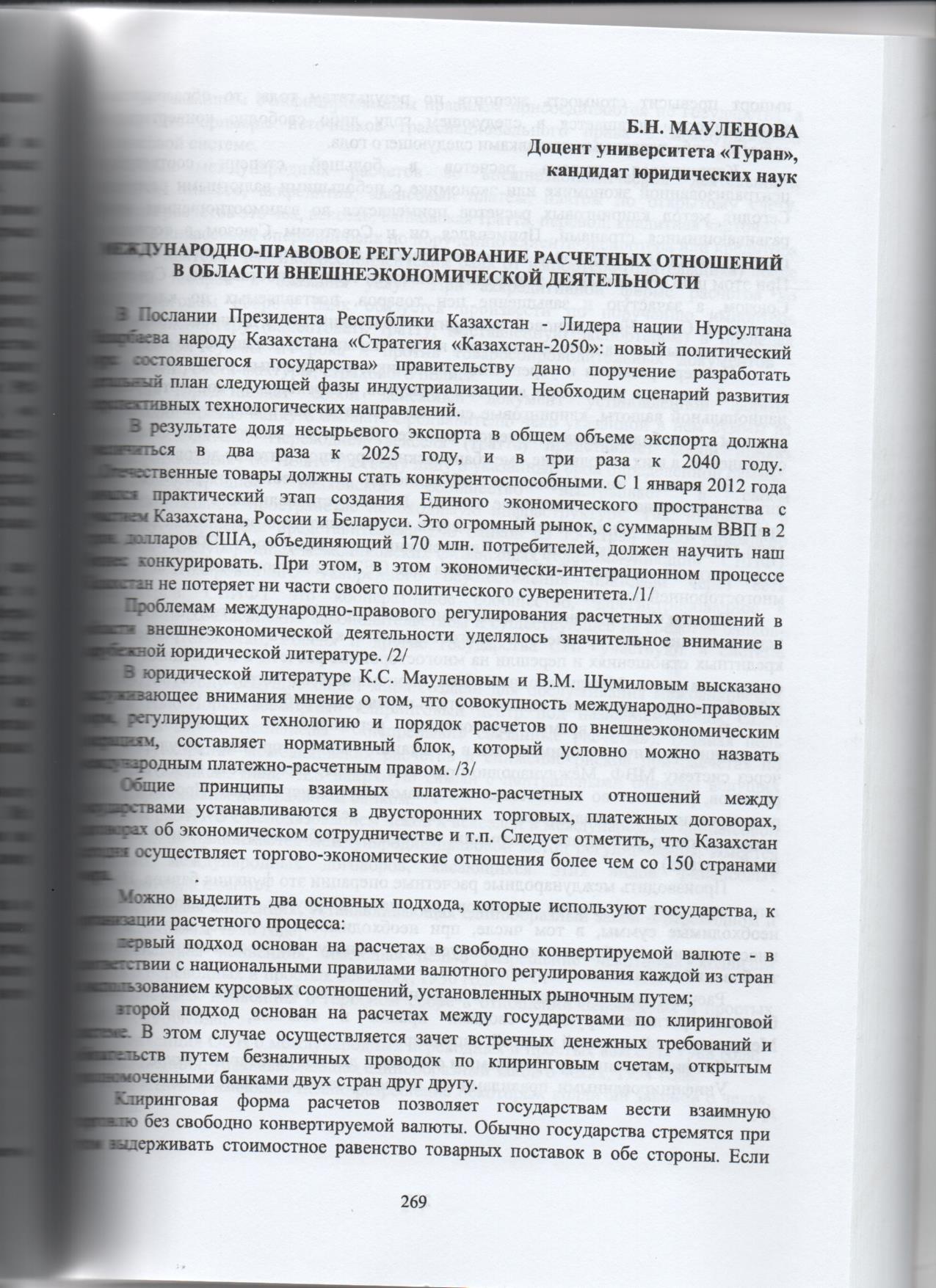 Стратегия «Казахстан – 2050» и совершенствование денежно – кредитной политики государства