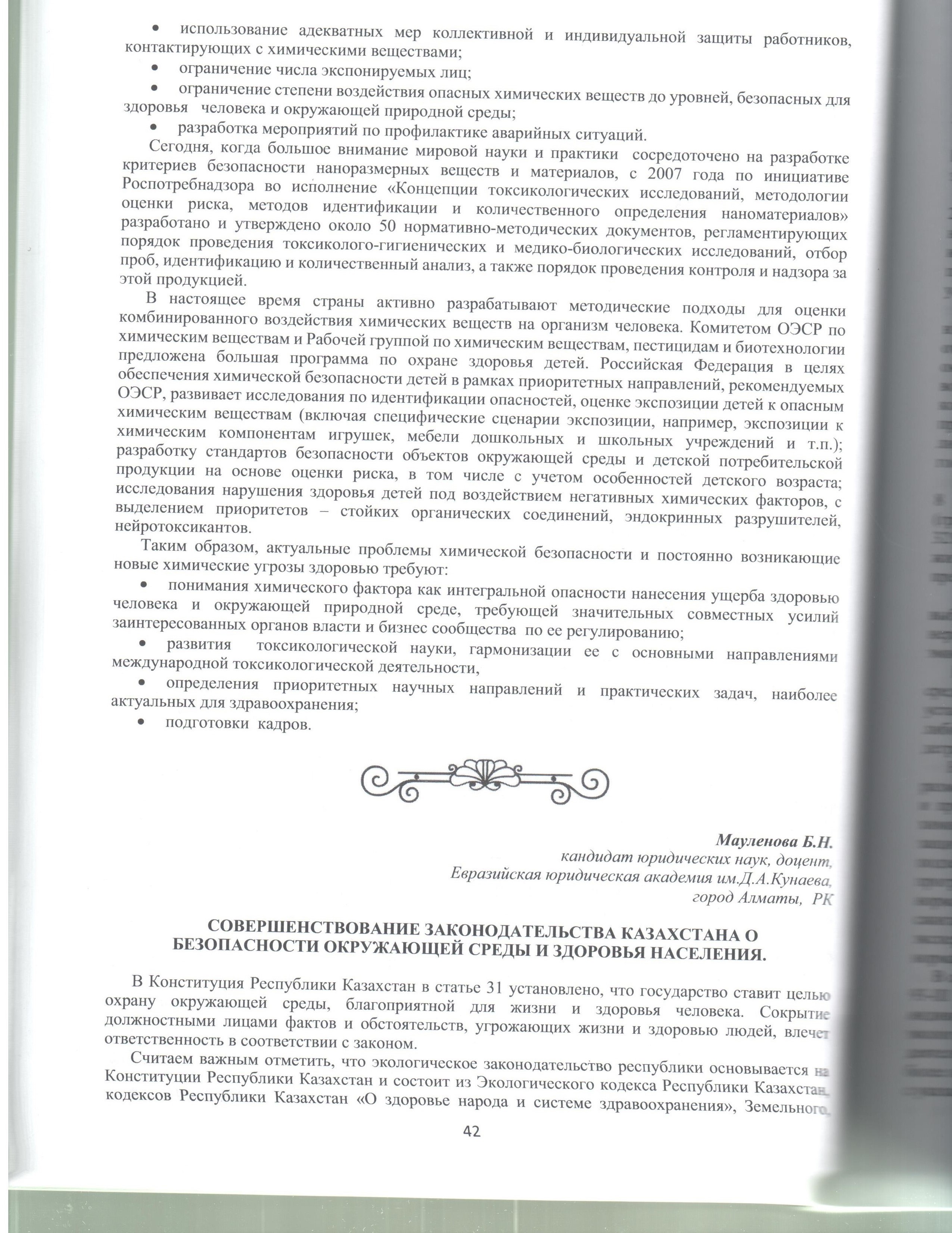 Совершенствование законодательства Казахстана о безопасности окружающей среды и здоровья населения