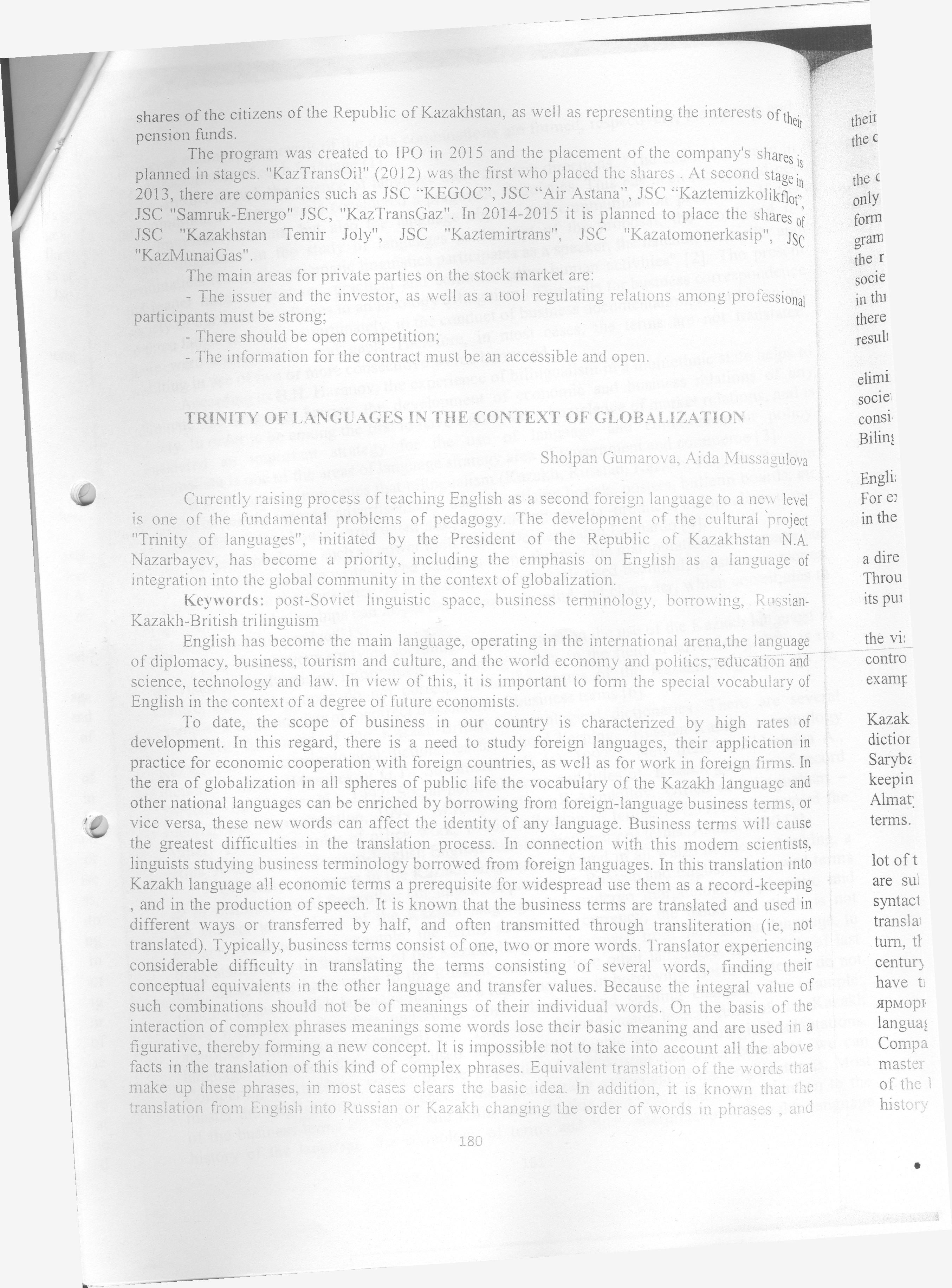 «Некоторые способы перевода научного текста» , VI Багизбаевские чтение международной научной-конференции, посвященной «80-летию Казахского Национального Университета имени аль-Фараби «Состояние и перспективы современной филологии » 25 апреля,2014г