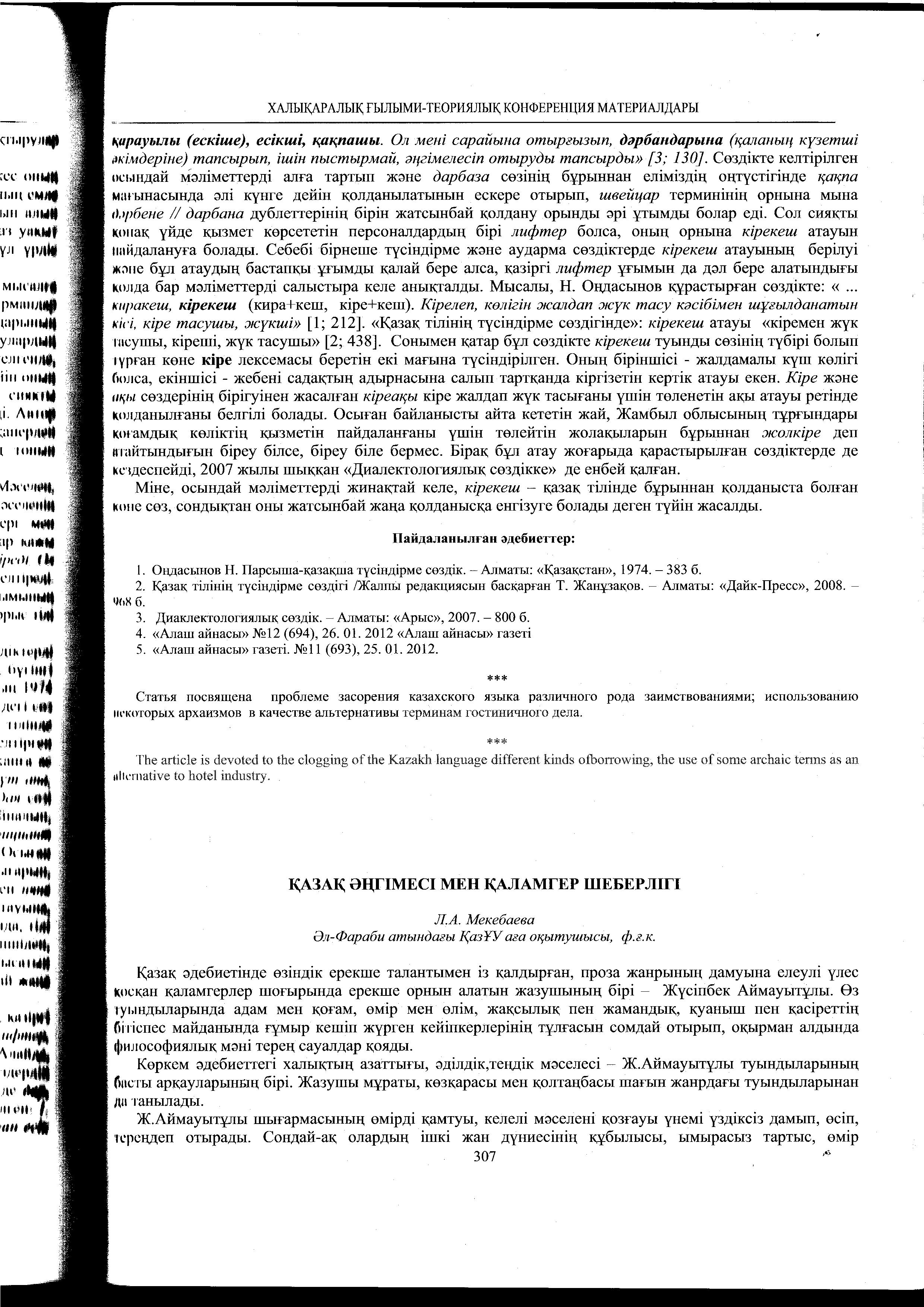 Главная / Филологический / Казахской литературы и теория литературы / Труды (тезисы, доклады) в сборниках и материалах научных конференций, симпозиумов, семинаров