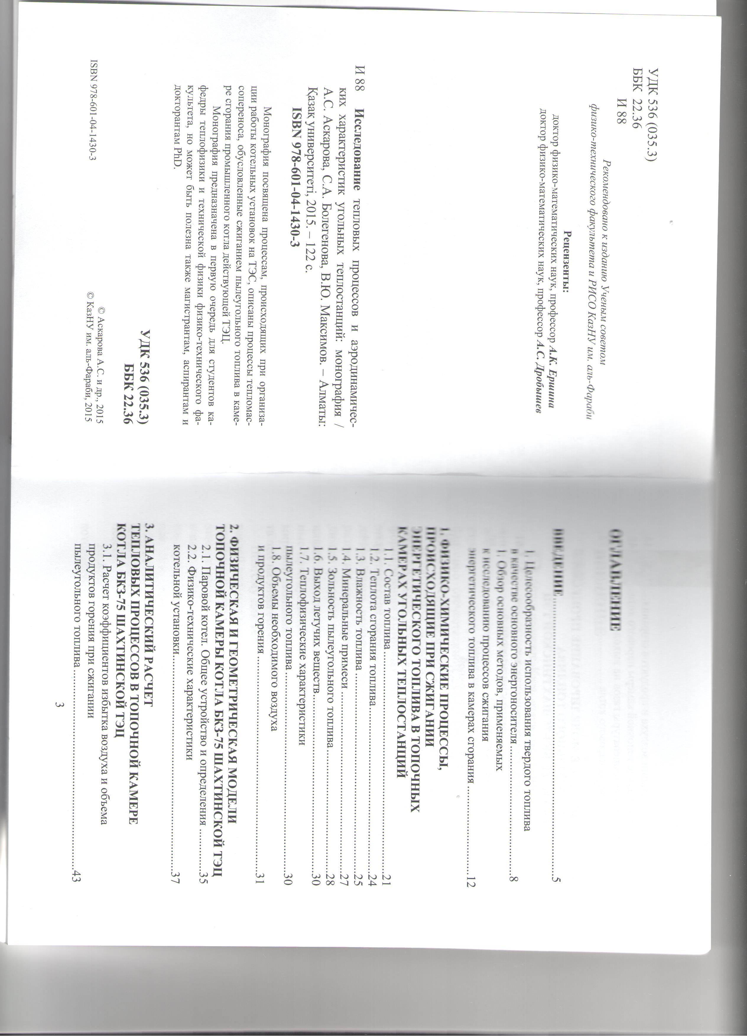 Исследование тепловых процессов и аэродинамических характеристик угольных теплостанций. /А.С. Аскарова,С.А. Болегенова, В.Ю. Максимов. – Алматы: Қазақ университеті, 2015. –122с.