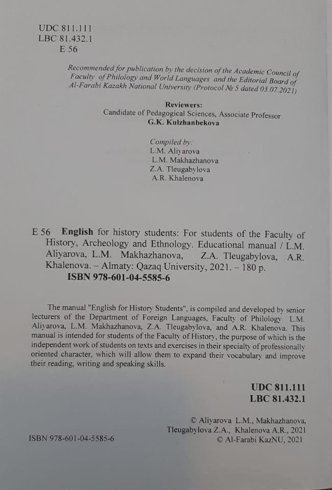 – Алматы: Қазақ университеті, 2021. – 218 с