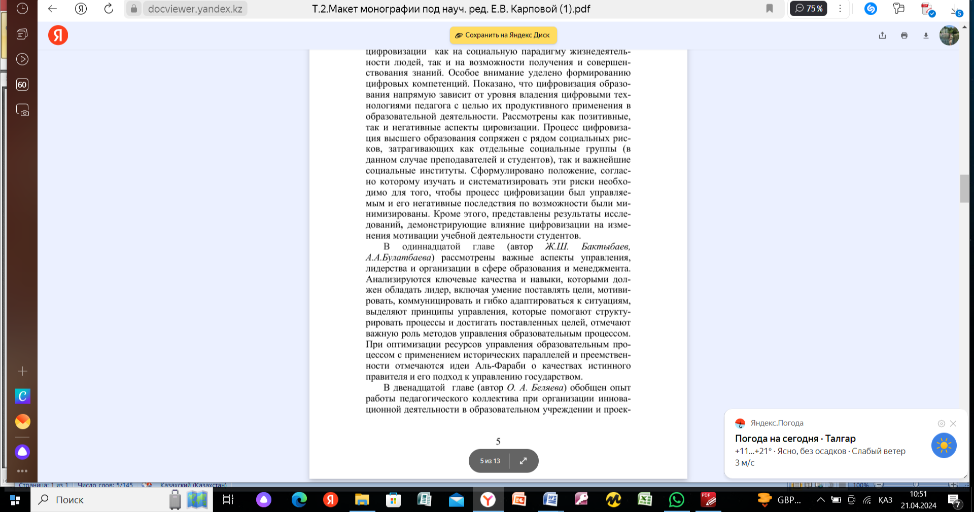 Социально-философская компаративистика. Учебное пособие для бакалавров специальности "Философия". - Алматы: Казак университетi, 2023. - 266 с. (соавтор З.Н. Исмагамбетова) Рекомендовано к использованию УМО РУМС на базе КазНУ им. аль-Фараби. Протокол №1 от 16.03.2022г. Подписано в печать26.11.2023г. Объем 16,6п.л.