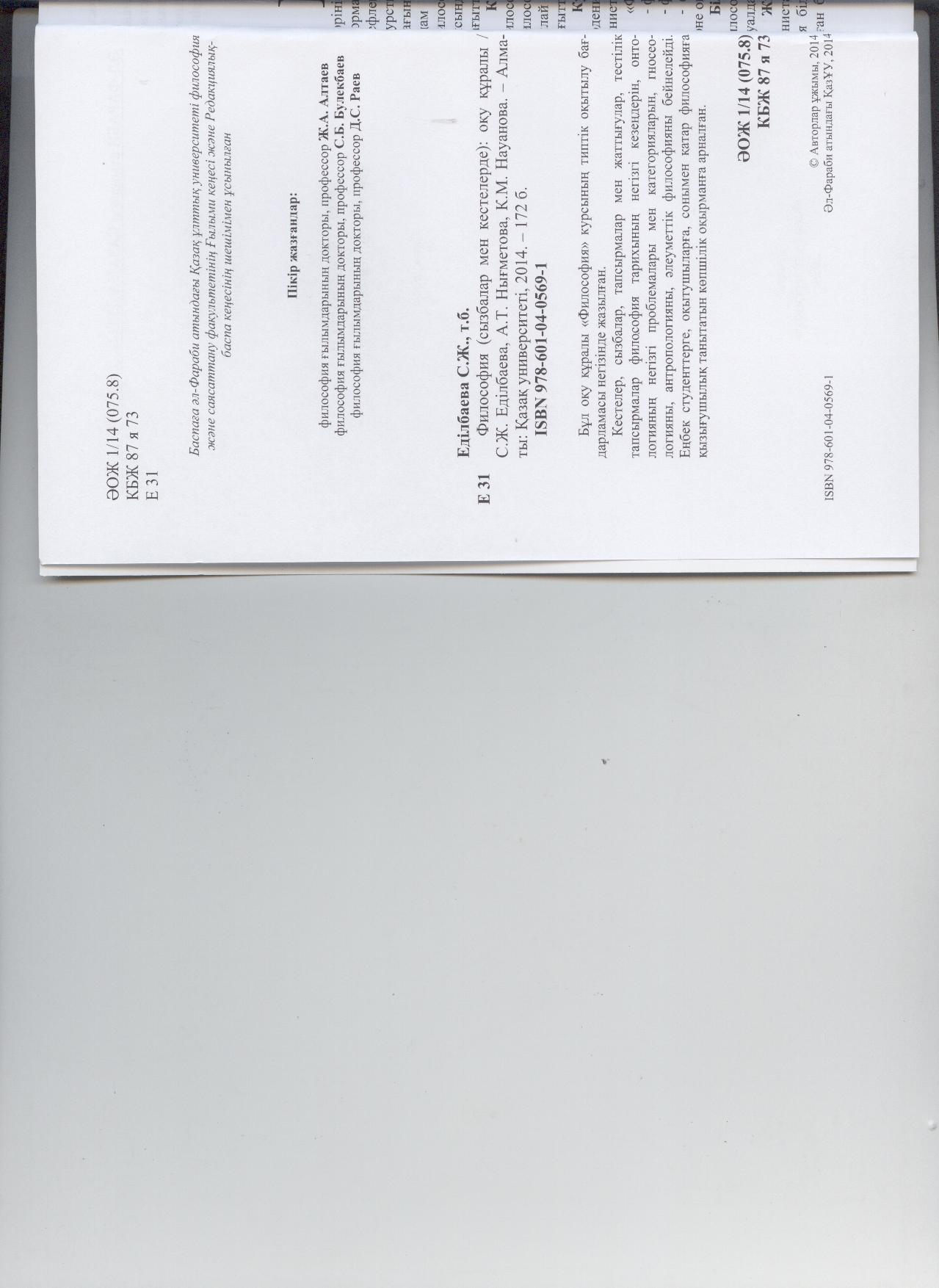 Философия (сызбылар мен кестелерде) Оқұ құралы.