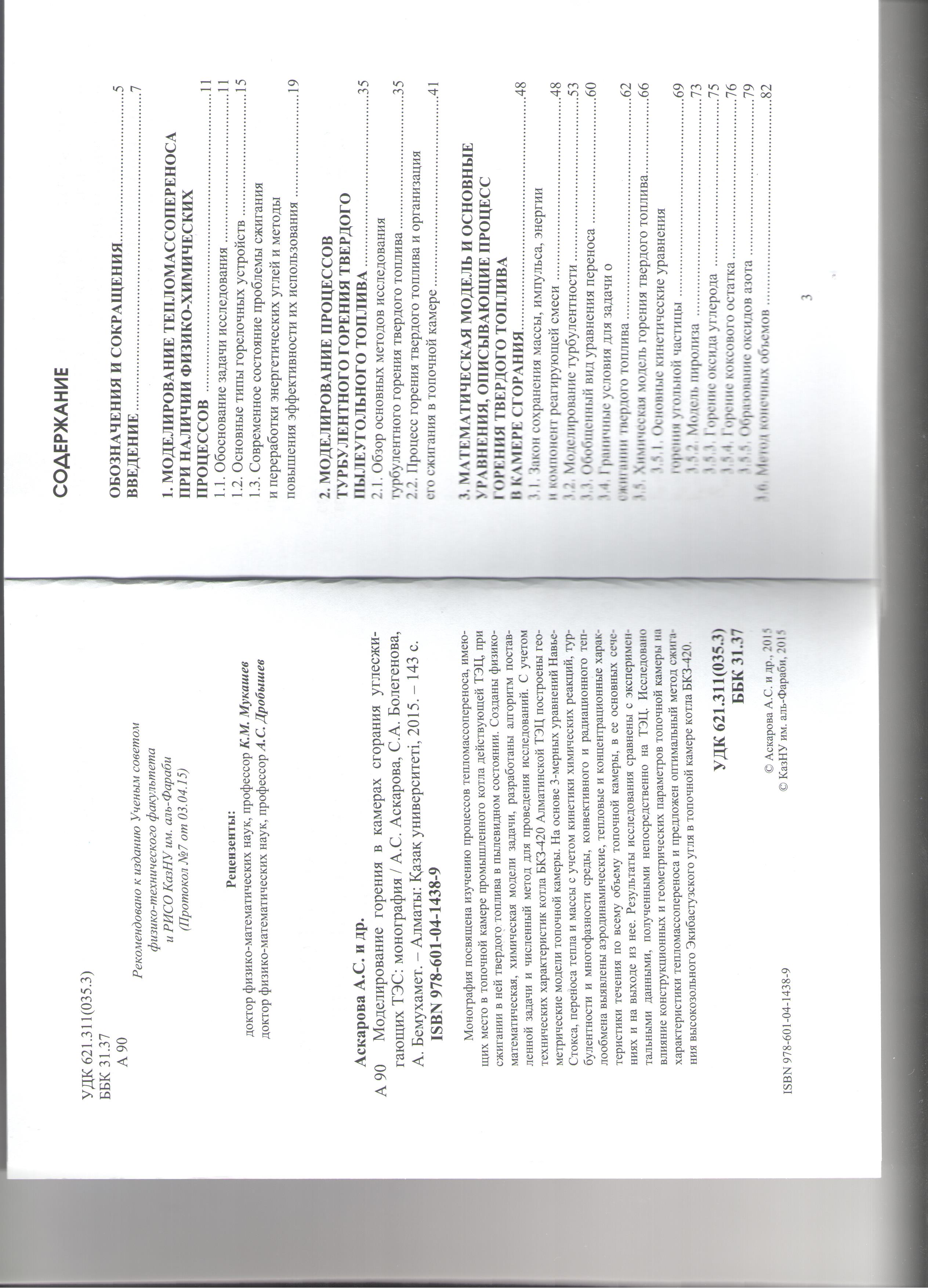 Моделирование горения в камерах сгорания углесжигающих ТЭС: Монография / Аскарова А.С. , Болегенова С.А. , Бемухамет А. - Алматы: Қазақ университеті, 2015. – 177 с.